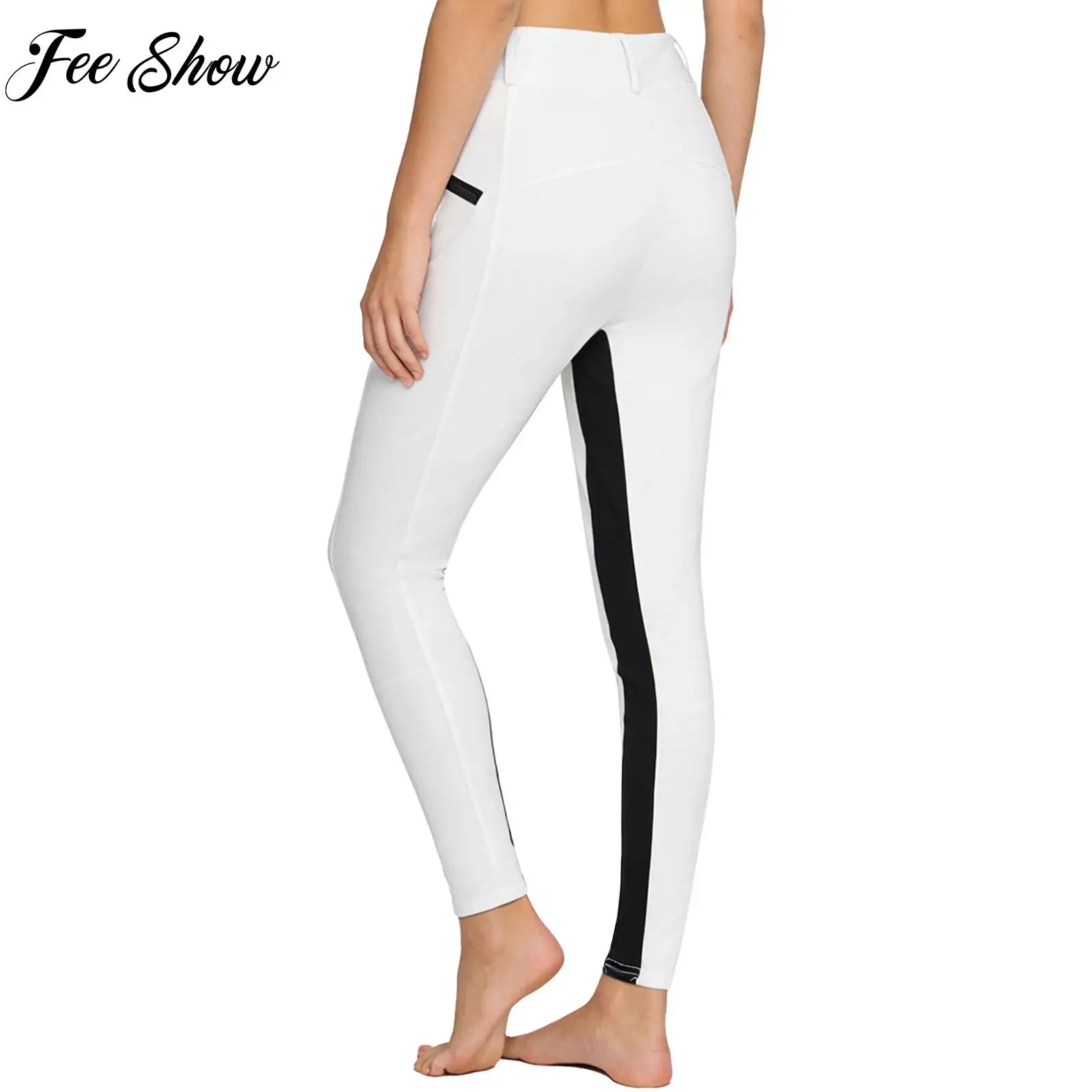 Pantaloni da equitazione da donna a blocchi di colore con elastico in vita, pantaloni da equitazione con cerniera decorativa, Jodhpurs da allenamento per equitazione