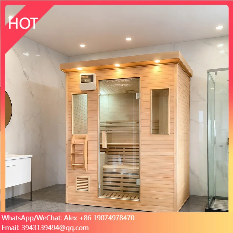 Sauna interna personalizzata ed economica con diverse modalità di riscaldamento, adatta a 2 persone, con stufa e pietre per sauna opzionali.