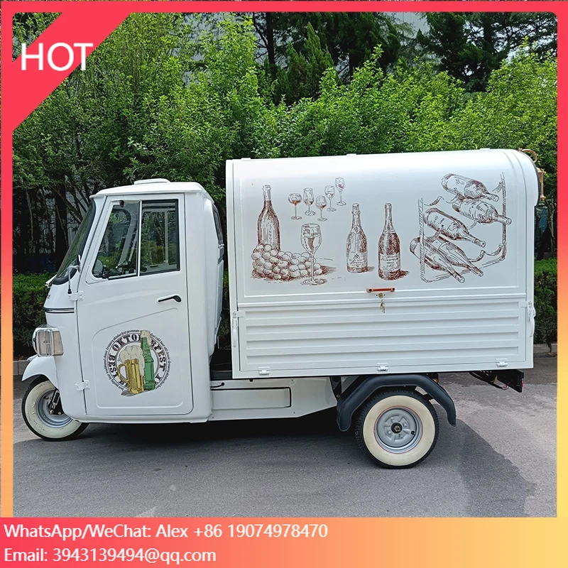 Carino Food Truck Mobile, Rimorchio per Caffè da Strada, Triciclo Elettrico, Carretto Multifunzione per BBQ, Dolciumi e Gelati