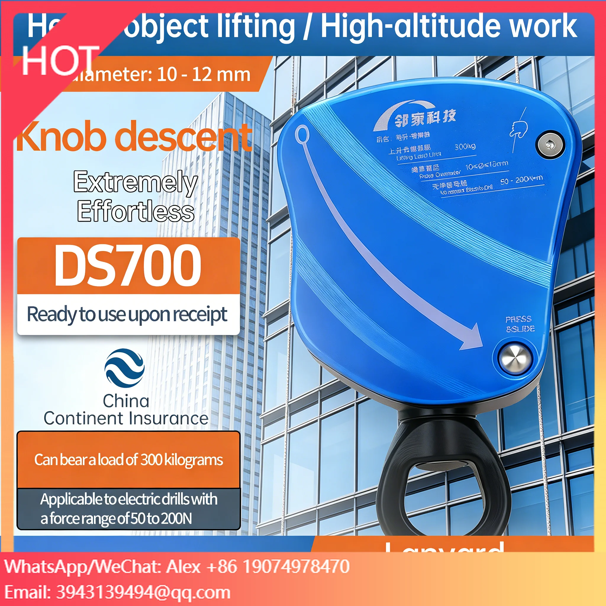 Nuovo Dispositivo di Discesa Elettrico Certificato DS700 per Fune Metallica 10-12mm, 200kg, in Alluminio Aeronautico 707 per Soccorso e Lavori in Quota