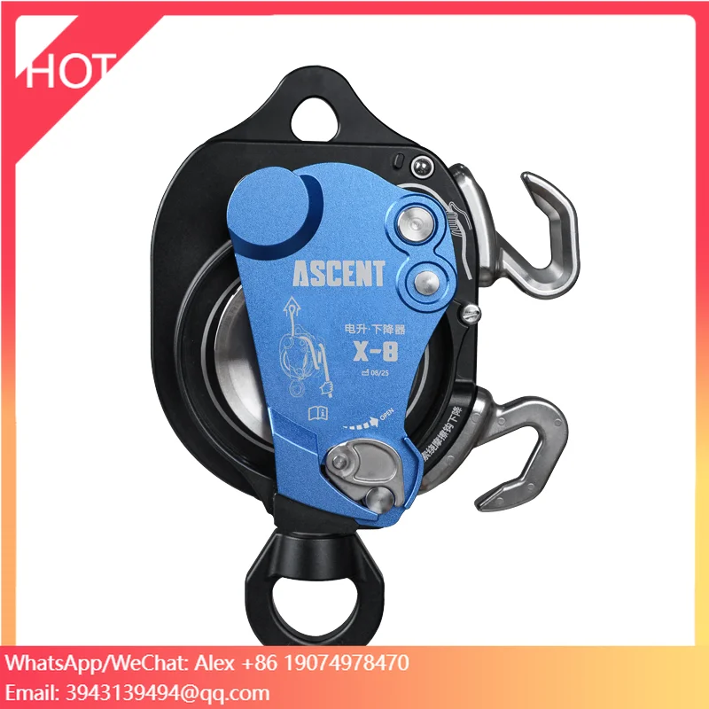 Dispositivo di Discesa Ascent Power Drive in Lega di Alluminio Leggero per Salvataggio con Corda, Freno Automatico, Velocità Regolabile, Protezione Anticaduta 200KG