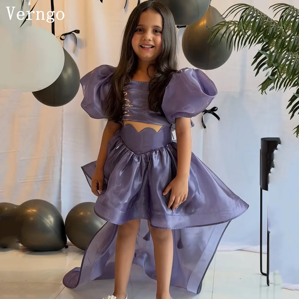 Verngo Abiti da festa per bambina viola antico, con scollo a O, maniche corte a sbuffo, abiti formali, 2 pezzi, abito da cerimonia per bambina personalizzabile