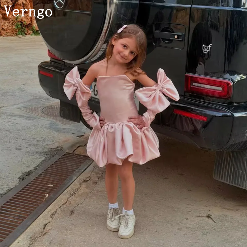 Verngo lvory Mini abito da ragazza in raso con fiori, abito da principessa con fiocco lucido, abito da festa di compleanno, abito da celebrità personalizzato