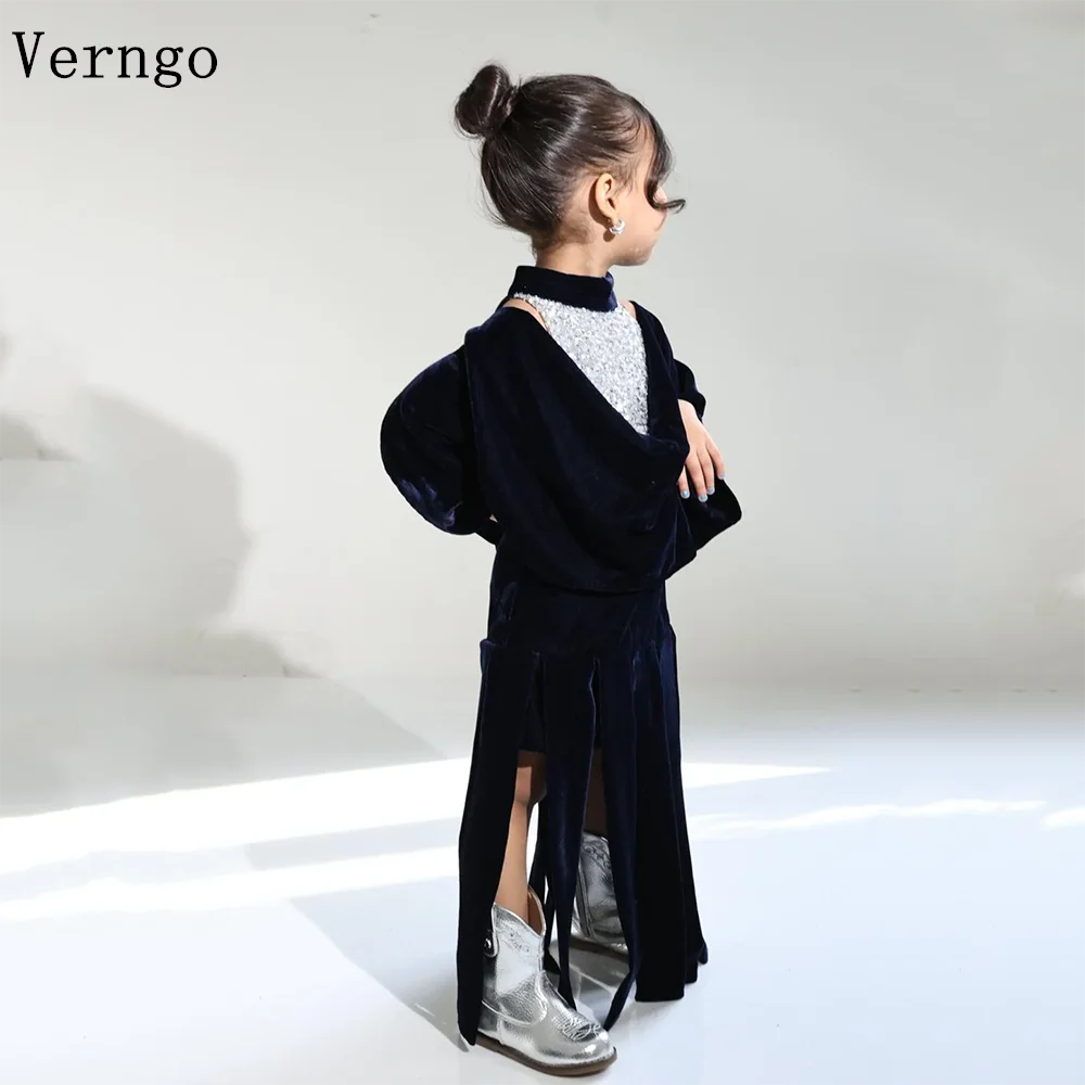Verngo Abito da festa di compleanno in velluto nero con paillettes, abito da ragazza con collo alto e linea ad A, abito elegante da principessa con pieghe, personalizzabile