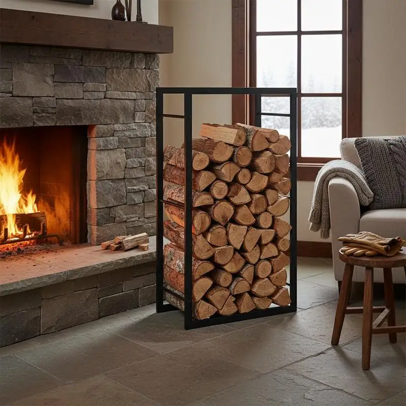 Porta legna da ardere portatile Porta legna da ardere in metallo Porta legna da ardere Organizzatore Porta legna da ardere per caminetto interno esterno