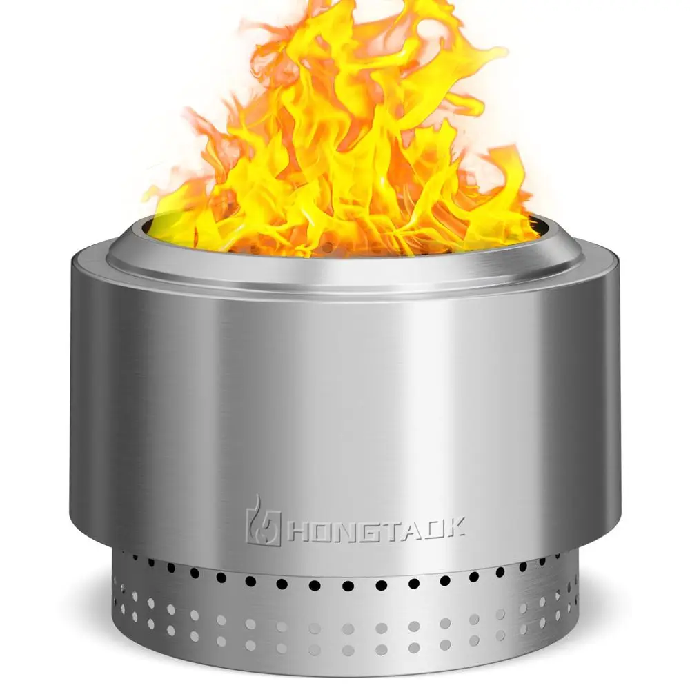 Braciere Senza Fumo 50 cm, Stufa da Giardino per Esterni, per Campeggio, Giardino, Balcone con Vassoio Raccogli Cenere Rimovibile, Acciaio Inossidabile