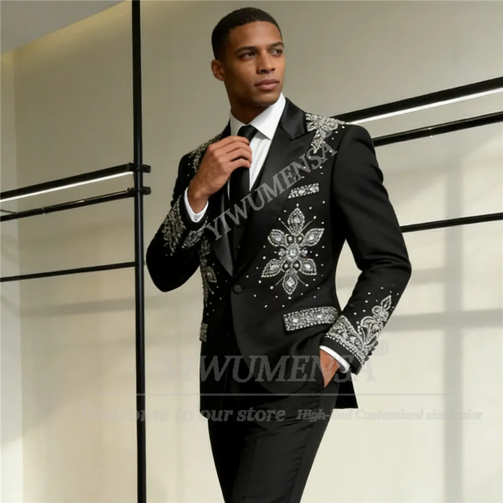 Giacca da uomo di lusso con ornamenti in pietre, set 2 pezzi, monopetto, per ballo di fine anno, personalizzabile, per sposo, smoking da matrimonio