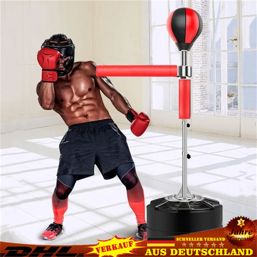 Sacco da boxe con piede regolabile in altezza, sacco da boxe fitness, con palline riflettenti, guantoni da boxe, 360 ° Barra rotante per