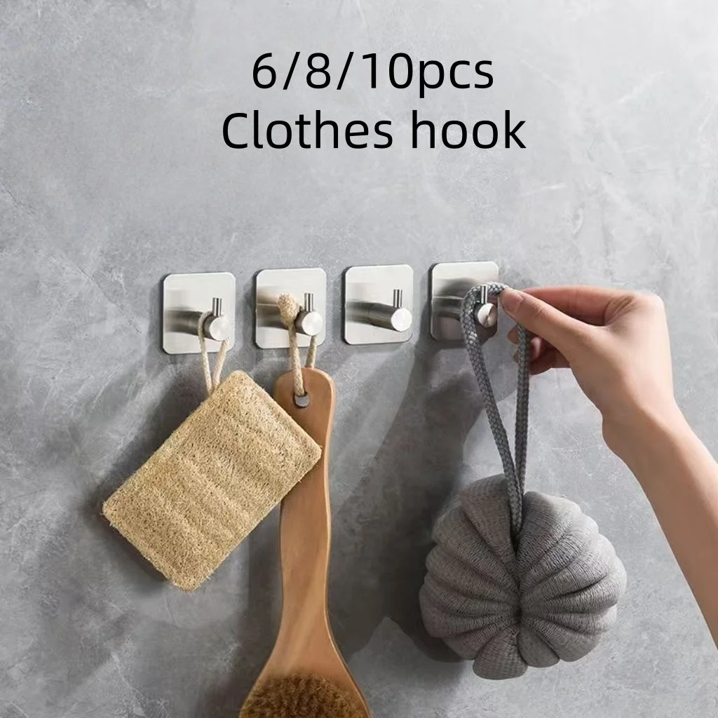 6 pz/pacco ganci da parete autoadesivo panno appendiabiti in acciaio inox forte appiccicoso bagno Hardware cucina gancio casa di stoccaggio