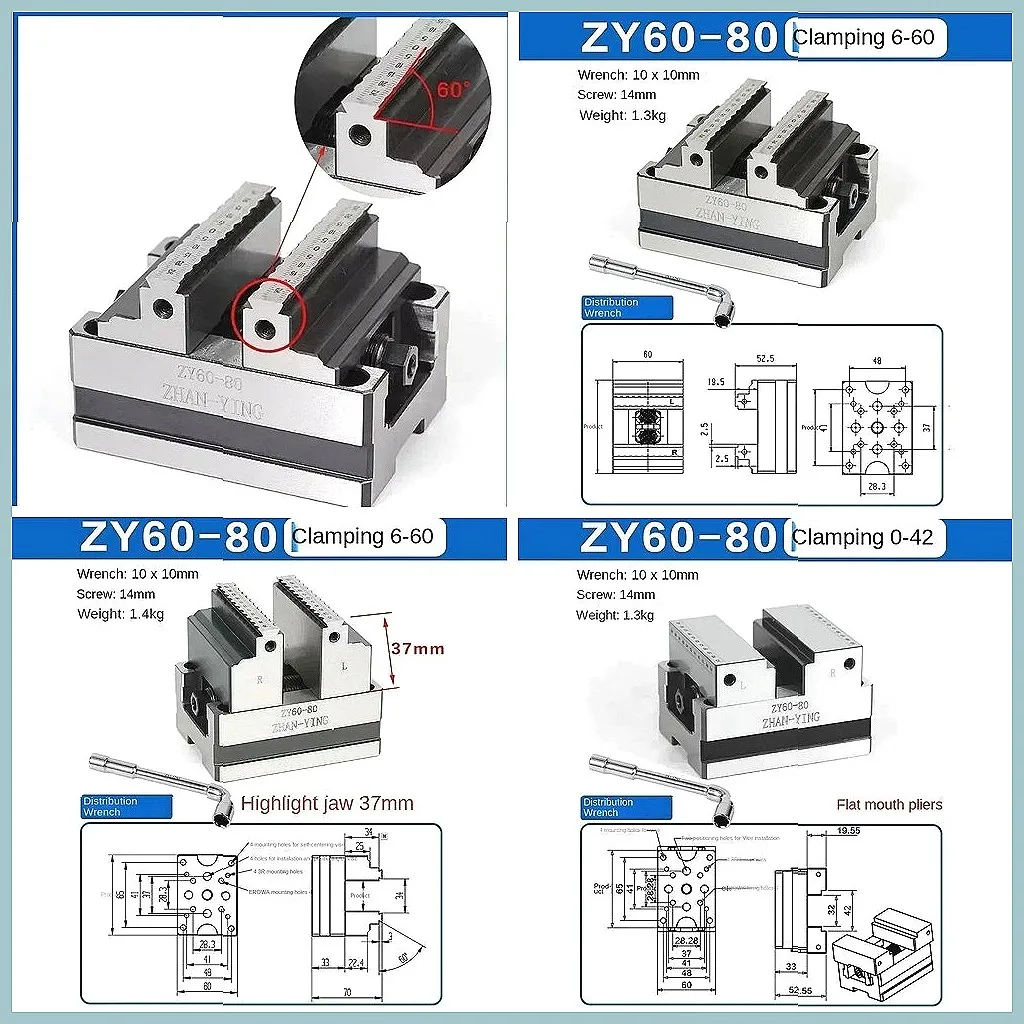 Pinza a ganascia piatta ad alta precisione QGG QGG50/63/73/88/100/125/150/200 Fresatrice Smerigliatrice Morsa ad angolo retto di grado industriale