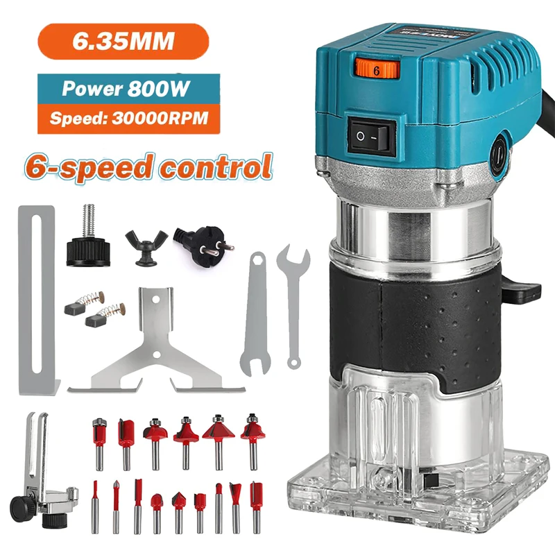 Fresatrice Elettrica 800W 6.35MM per Legno, Macchina per Fresatura, Incisione e Scanalatura con 6 Velocità, Utensile per Intaglio Elettrico