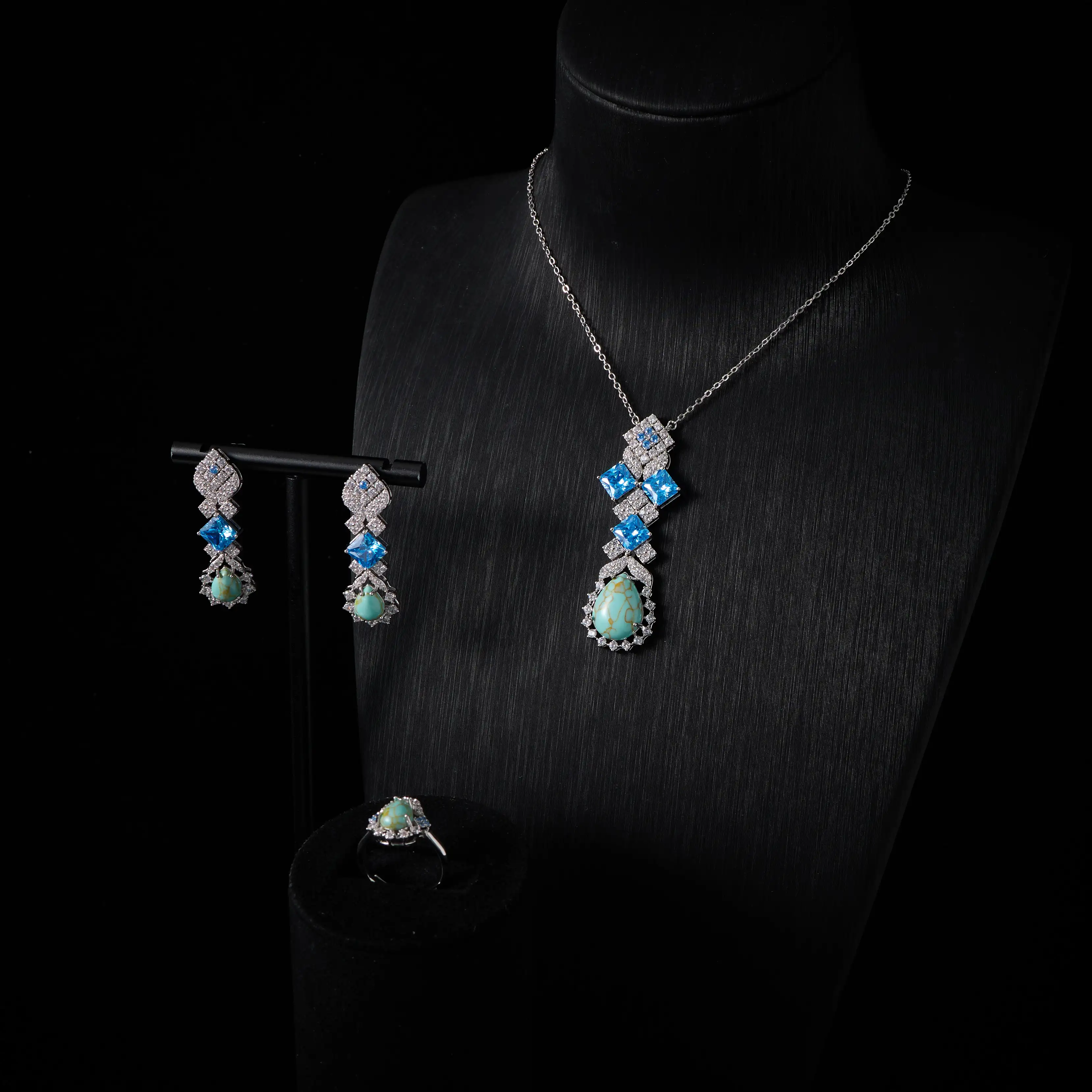 00019 Set di gioielli alla moda per donna Set di collane Turquoi Collana con zirconi cubici/Orecchini/Anello Accessorio per feste da sposa