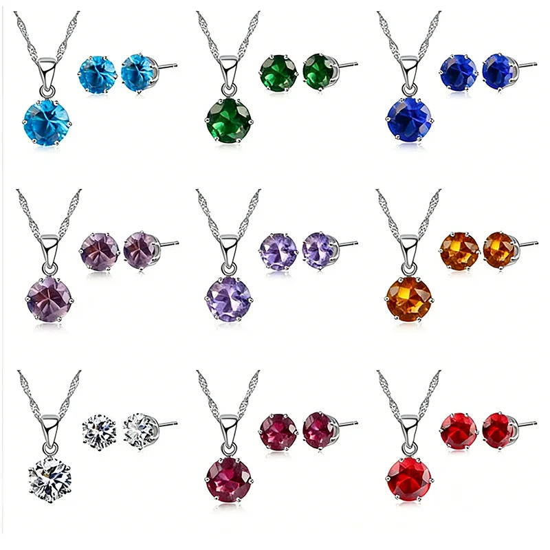 Set di gioielli da sposa da sposa in argento sterling 925 da 14 colori per le donne Set di orecchini con ciondolo in cristallo di fidanzamento