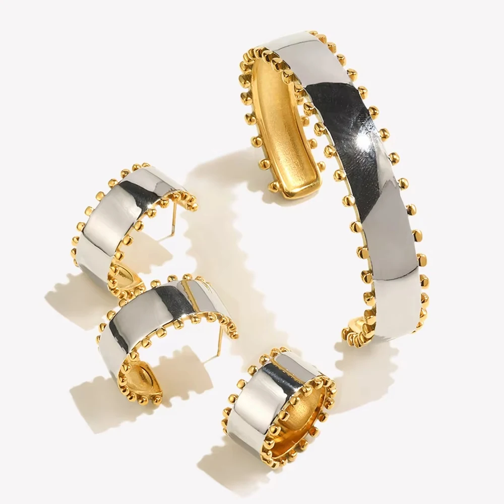 EBbelle Doppio Colore Perline Bordo Lucido Bracciale Orecchino Anello Set di Gioielli da Donna Acciaio Inossidabile Placcato Oro 18k Impermeabile