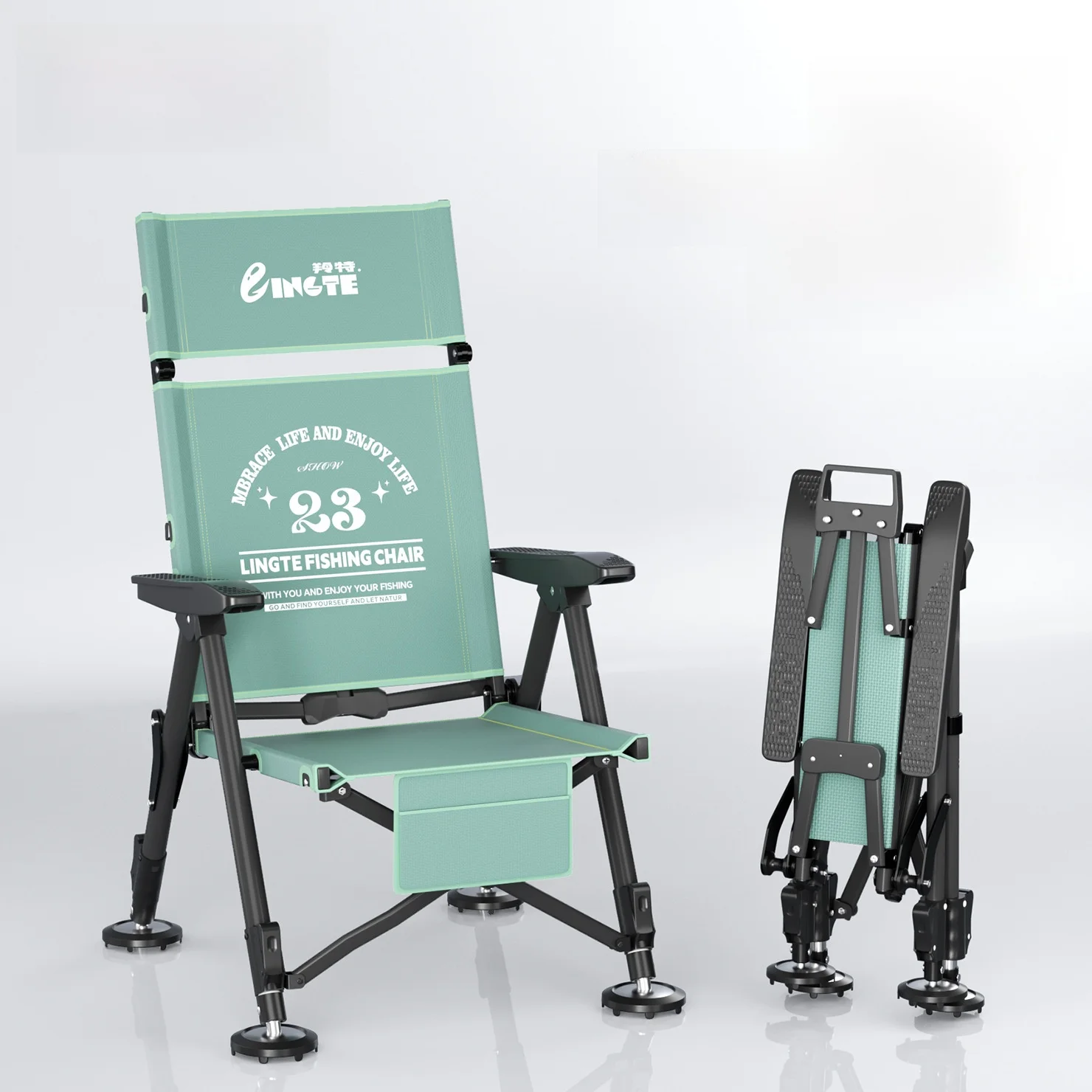 Sedia da pesca regolabile da 1 pezzo con gambe estese, cuscinetti antiscivolo per la pesca all'aperto