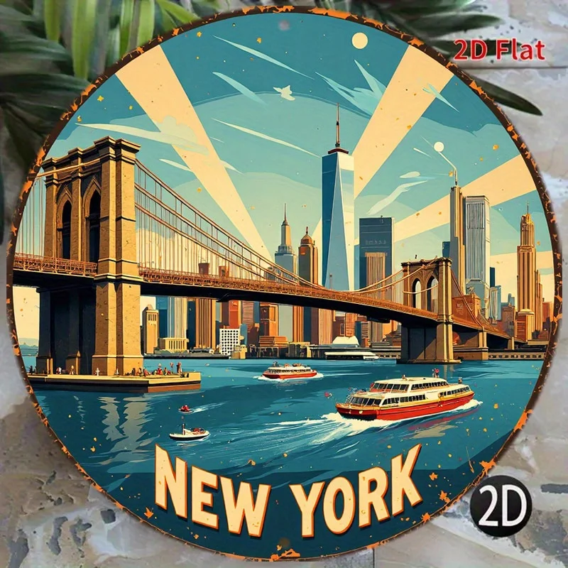 Targa da parete in metallo con paesaggio di New York - Design vintage, perfetta per l'arredamento della casa, giardini, bar e caffè - Regalo per le vacanze estive