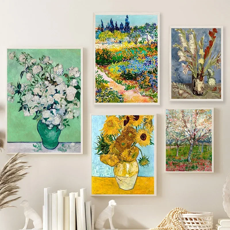 Poster Vintage di Vincent Van Gogh 'Girasoli nel Giardino di Arles 1888', Stampa su Tela, Quadro Paesaggistico per Decorazione Casa