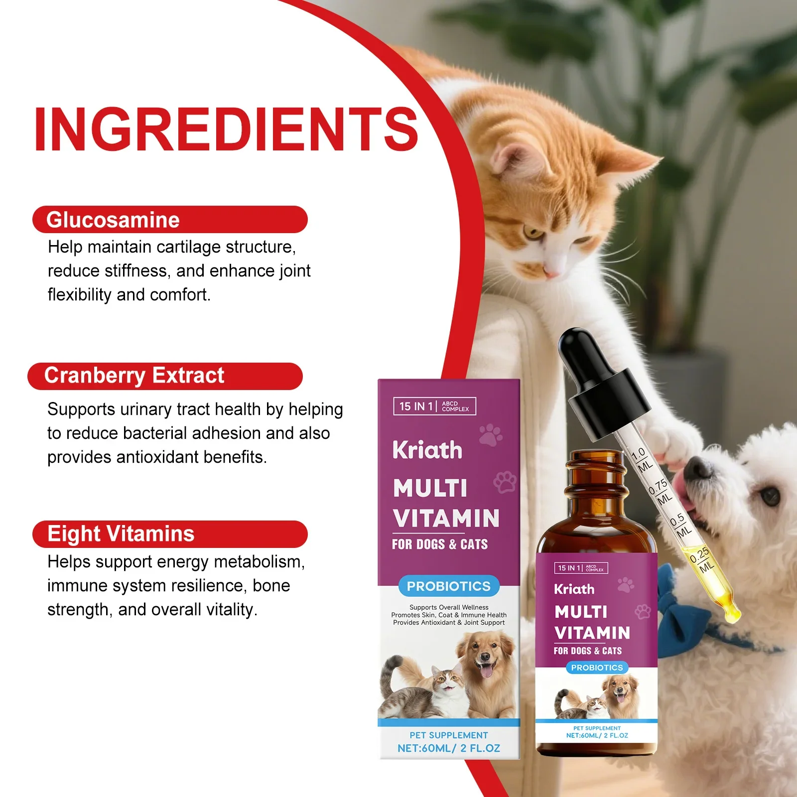 Gocce Multivitaminiche per Cani e Gatti per la Cura delle Articolazioni, Supporto Immunitario e della Mobilità, Vitamina Liquida Orale per Animali Domestici, Mantenimento della Salute Urinaria, Riduzione della Rigidità