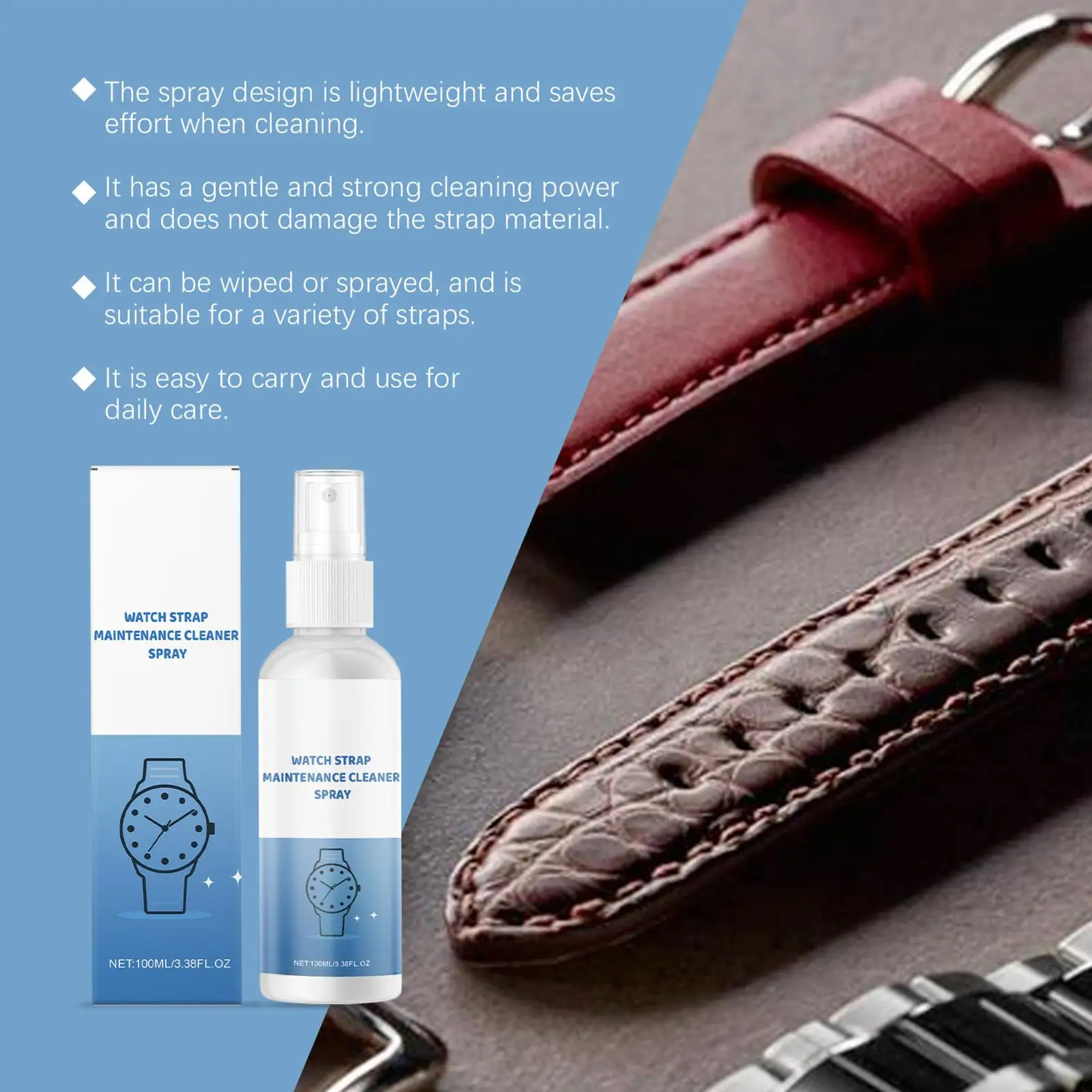 Detergente per orologi Spray 100ml Spray per la pulizia del cinturino dell'orologio per gioielli Liquido per la rimozione dei graffi ad asciugatura rapida Custodia portatile per donna Uomo