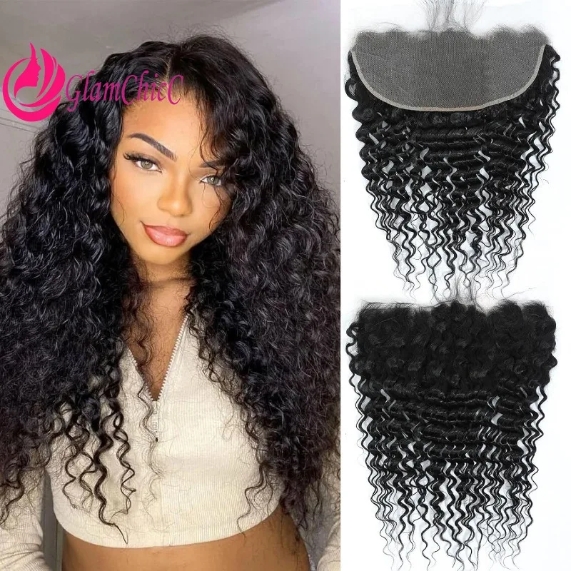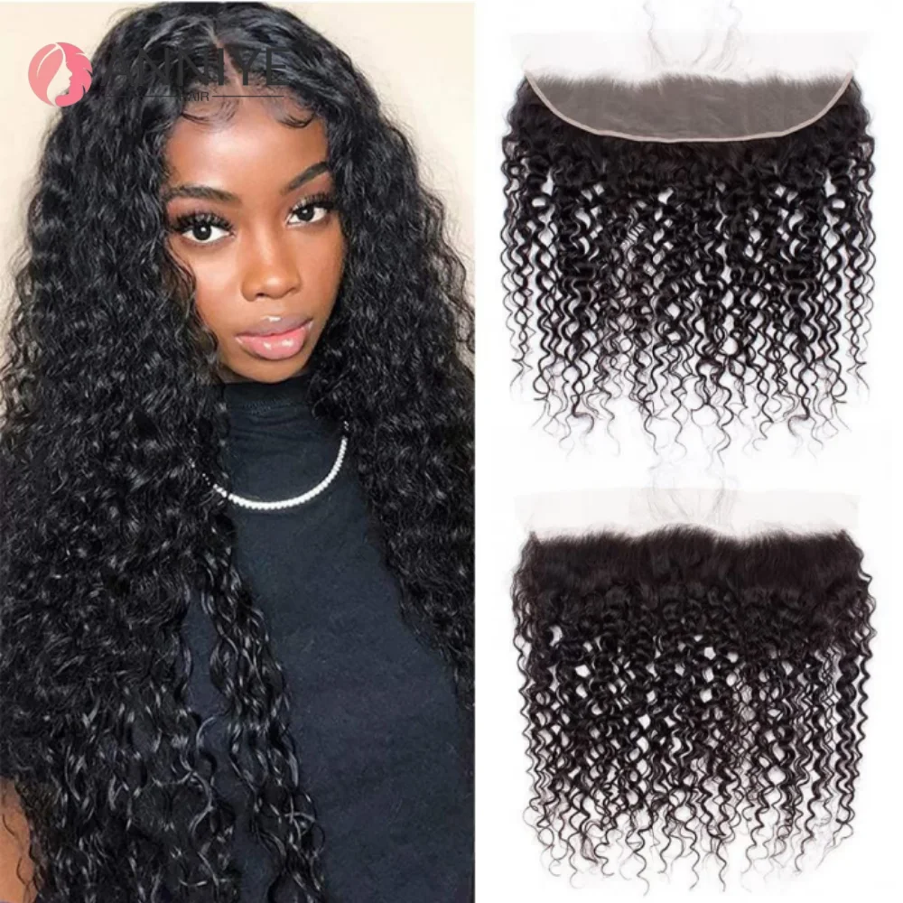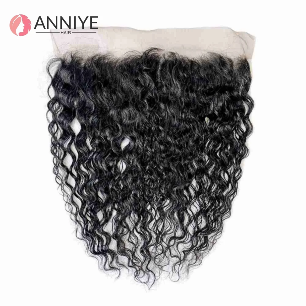 Premium 13x6 Onda Profonda Frontale Del Merletto Dei Capelli Umani Chiusura Del Merletto Trasparente 100% Capelli Vergini di Remy per Le Donne Colore Naturale 10-22''