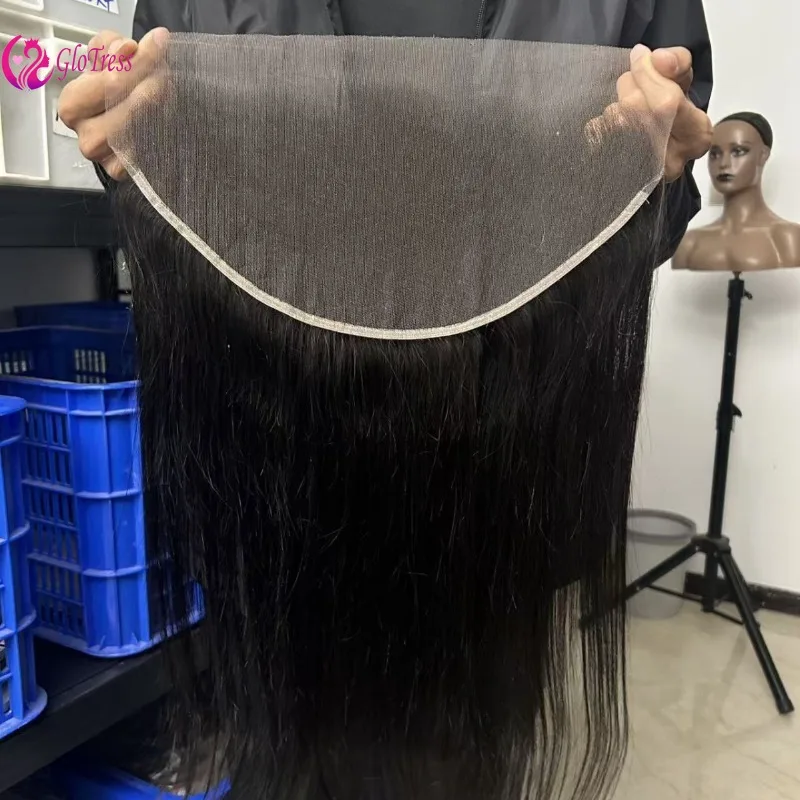 Chiusura in pizzo dritto 4x4 13x4 Chiusura in pizzo svizzero trasparente Frontale Chiusura in pizzo per capelli umani legati a mano pura 10-22 pollici