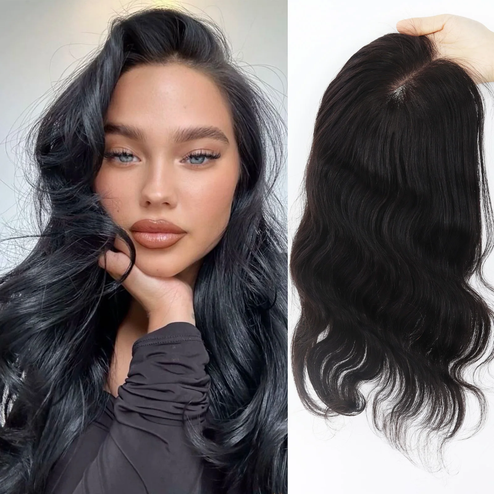 Topper per capelli con pizzo HD 5x5” per donna, 30” di lunghezza, capelli umani vergini europei ondulati con frontale in pizzo, colore nero-marrone