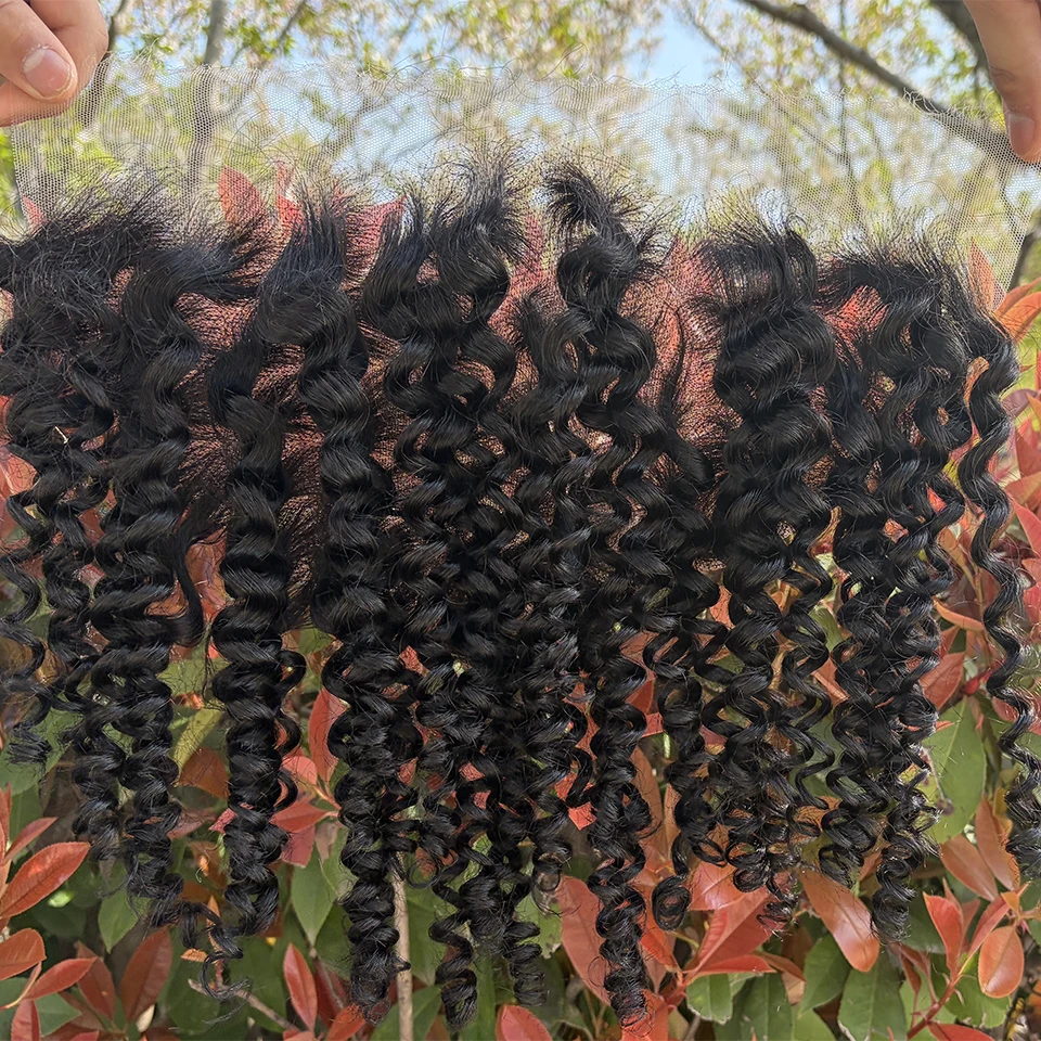 Chiusura frontale in pizzo riccio crespo Solo 13x4 Frontale in pizzo Capelli remy brasiliani Pre pizzicati Capelli umani al 100% Frontale in pizzo riccio crespo