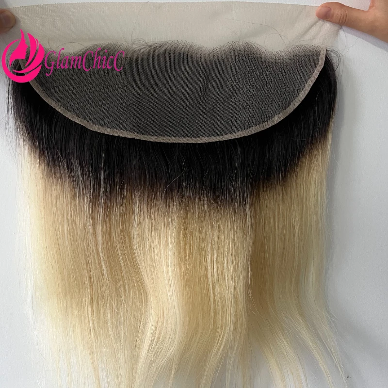 Capelli umani biondi da orecchio a orecchio 13x6 frontali in pizzo trasparente 1B/613 dritto 4x4 chiusura in pizzo pre pizzicato con linea sottile naturale