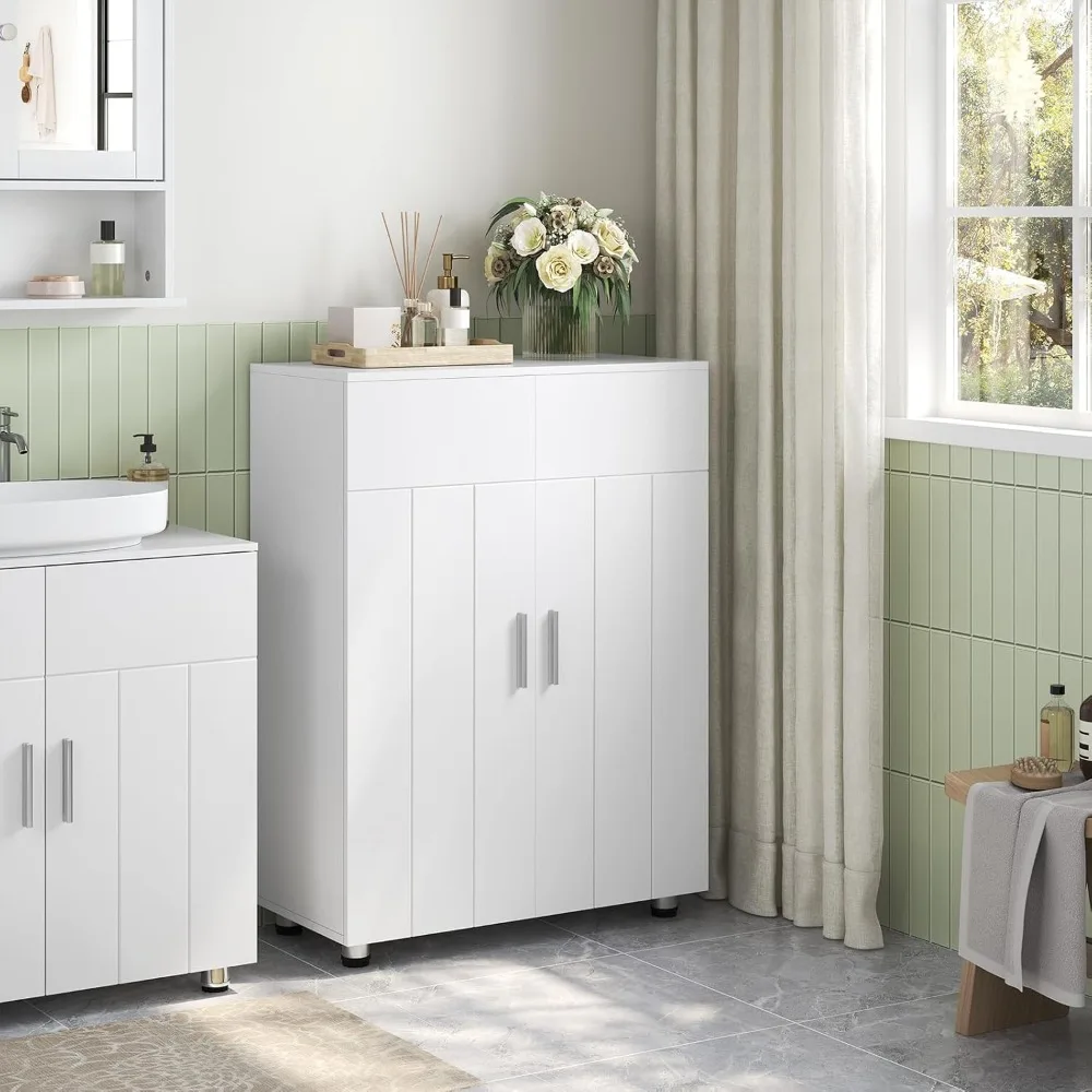 Mobiletto da pavimento per bagno, unità portaoggetti da bagno indipendente impermeabile con strato per uso quotidiano e anta doppia dell'armadio, PVC a 3 livelli