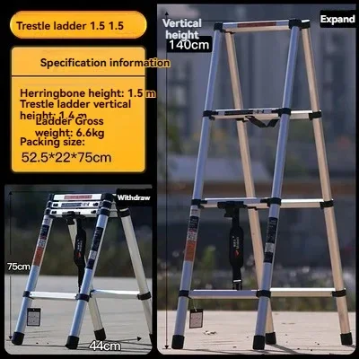 Scala telescopica in lega di alluminio addensata 1.4M + 1.4M Scala multiuso a spina di pesce Scala di ingegneria pieghevole per la casa portatile
