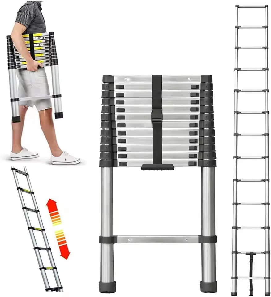 Scala telescopica in acciaio inox da 2,5m-5m, scala telescopica pieghevole, regolabile in altezza, adatta per uso esterno e domestico.