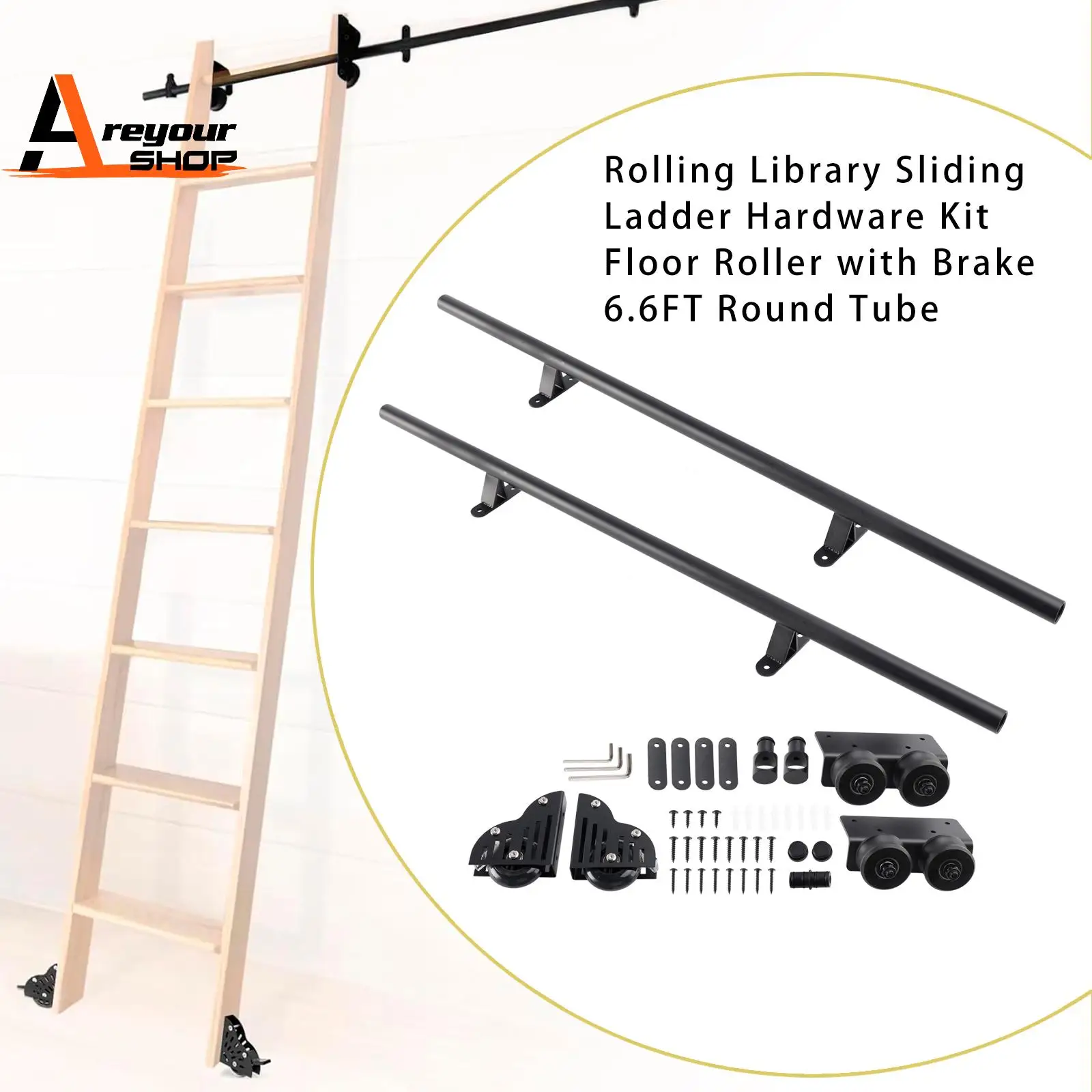 Kit hardware per scaletta scorrevole per biblioteca con tubo tondo da 6,6 piedi con freno
