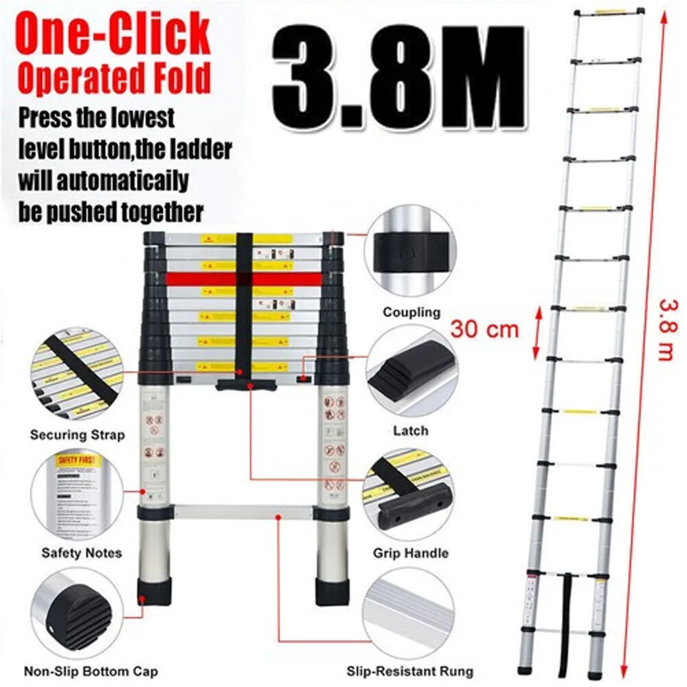 Scala telescopica resistente da 3,8 m Scala estensibile in alluminio di sicurezza portatile 13 gradini multiuso