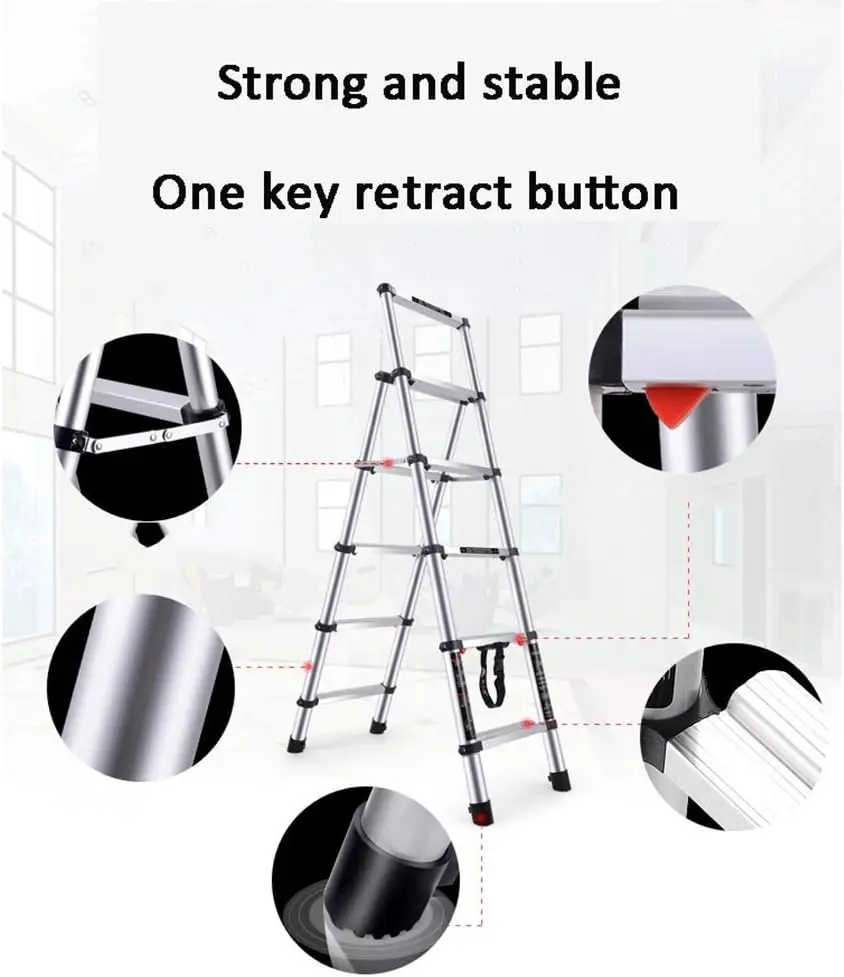 Scala Telescopica, Scala Pieghevole a Spina di Pesce per Uso Domestico in Lega di Alluminio Rinforzata - Telescopica con Apertura a Un Tasto