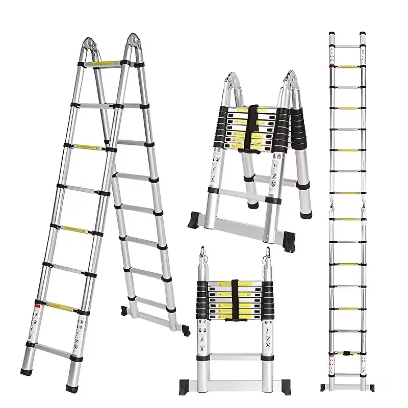 Scala telescopica in acciaio inox da 2,5m-5m, scala telescopica pieghevole, regolabile in altezza, adatta per uso esterno e domestico.