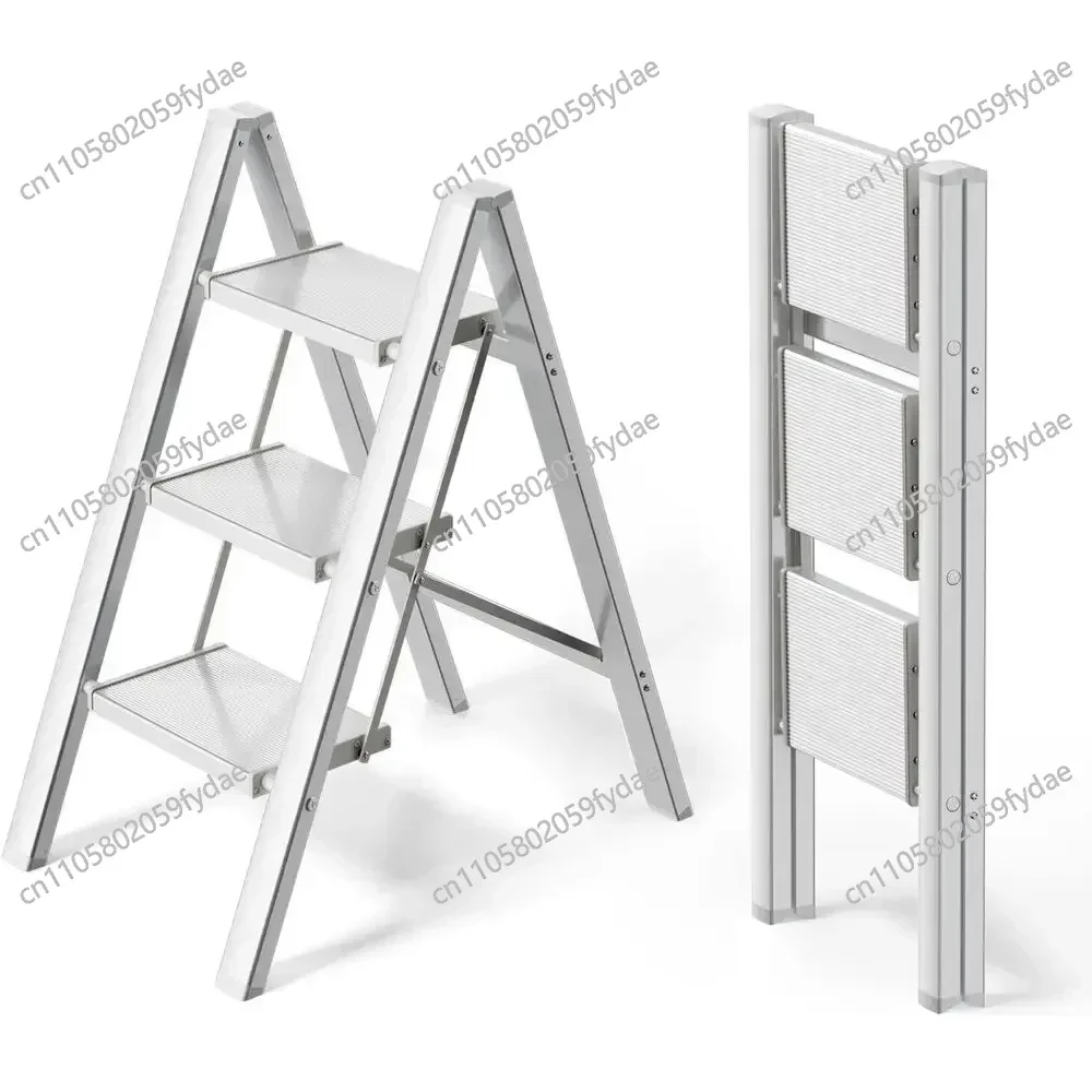 Scala a 3/4 Gradini, Scala Pieghevole in Alluminio con Gradini Larghi, Piedini Antiscivolo, Scala Portatile Leggera 150kg