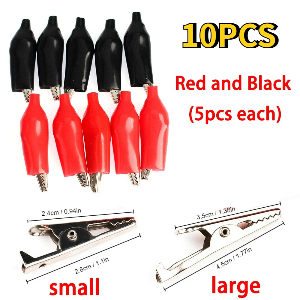Kit di 10 Mini Clip a Coccodrillo, Pinze di Test Alligatore 24*28mm 35*45mm, Rivestimento in Plastica Morbida Nera e Rossa per Progetti Elettronici
