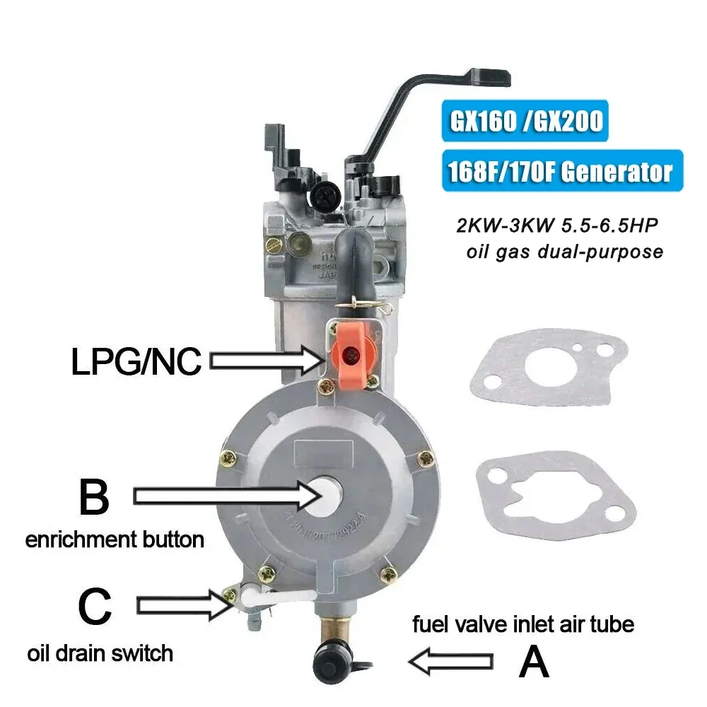 Nuovo Kit di Conversione Carburatore a Doppia Alimentazione GPL/Gas Naturale da 3KW 168F 170F per Generatore a Gas, Ricambi per Generatore 6.5HP
