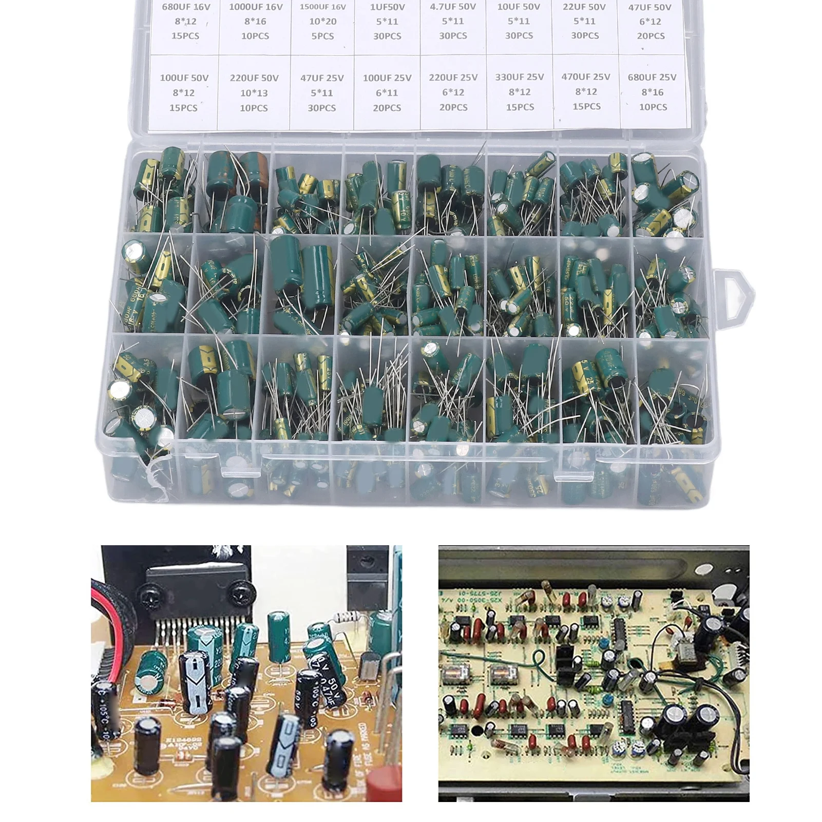 Kit di condensatori elettrolitici da 460 pezzi Kit di assortimento di condensatori elettrolitici in alluminio in linea 6,3 V-50 V Verde