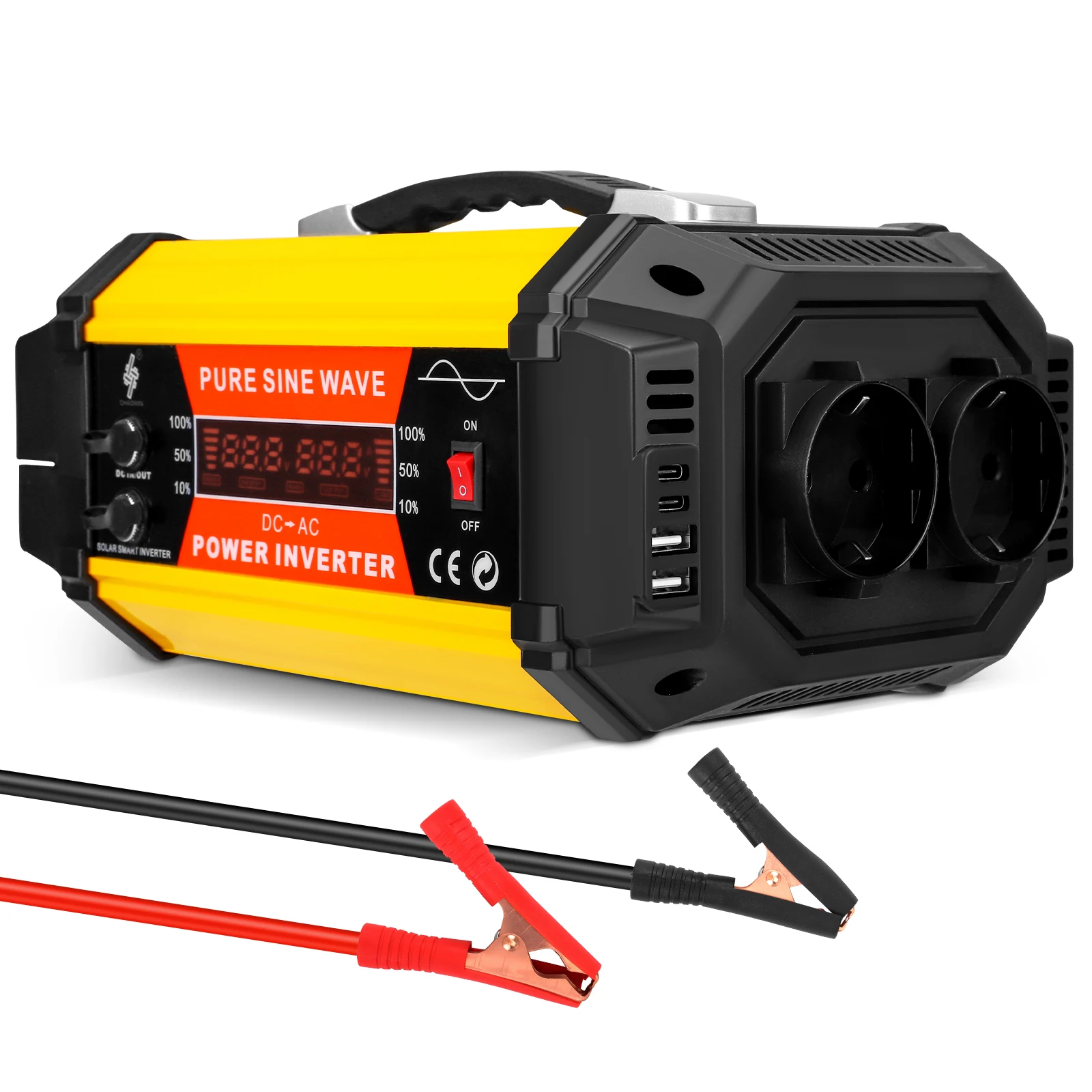 Convertitore di tensione a onda sinusoidale inverter da 1000 W Convertitore di potenza da CC 12 V a CA 230 V con 2 prese 2 porte USB per campeggio in camper