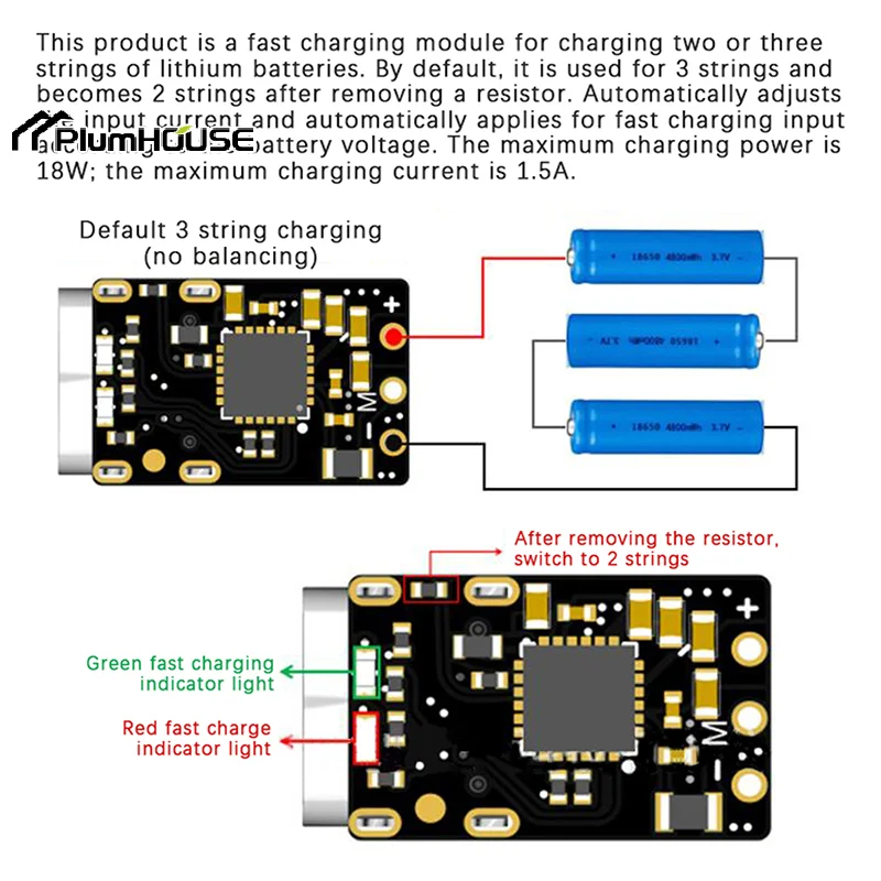 1/3 Pz Tipo-C 2S/3S 3.7 V Modulo di Scarica di Carica Caricatore DC 4.5 ~ 9.5 V Bordo Boost Converter 18650 Batteria Al Litio di Alimentazione