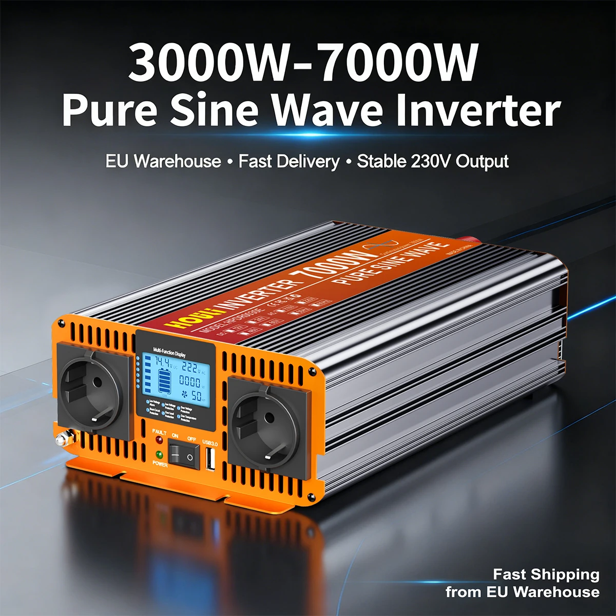 Przetwornica Napięcia 12V 3000W4000W 5000W 6000W 7000W Inwerter 230V Czysta Sinusoida LCD Pilot 2EU Porty Szybka Polska Dostawa
