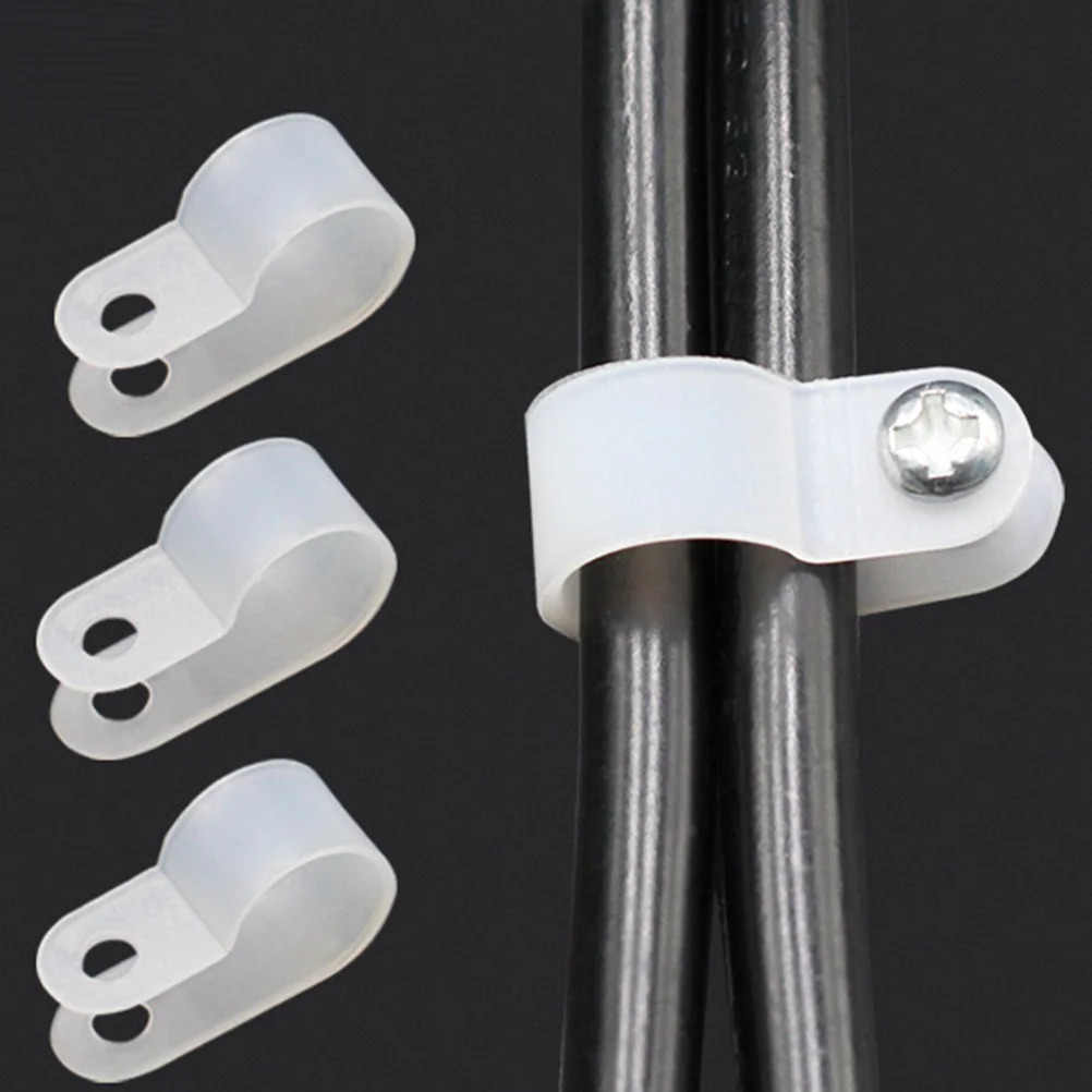 100 pezzi porta cavi tipo R clip per cavi in nylon viti bianche in acciaio inossidabile organizer per cavi per cavo elettrico del computer