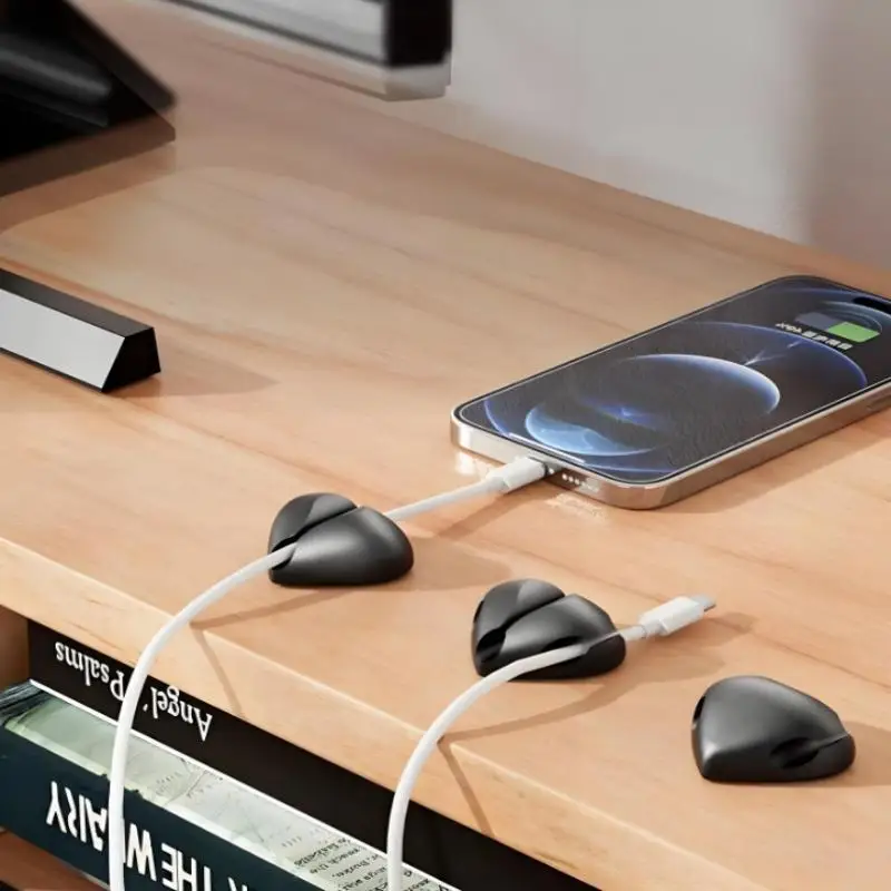 Organizzatore di cavi autoadesivo in silicone a forma di cuore 4 pezzi Clip per cavo di ricarica USB per avvolgicavo da scrivania Clip per supporto per cavo per ufficio domestico