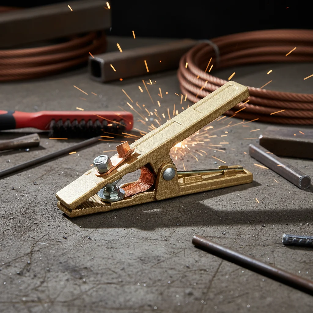 Morsetto di terra per saldatura con clip di messa a terra a forma di A in ottone 300A per parti di utensili elettrici con morsetto di terra per impieghi gravosi