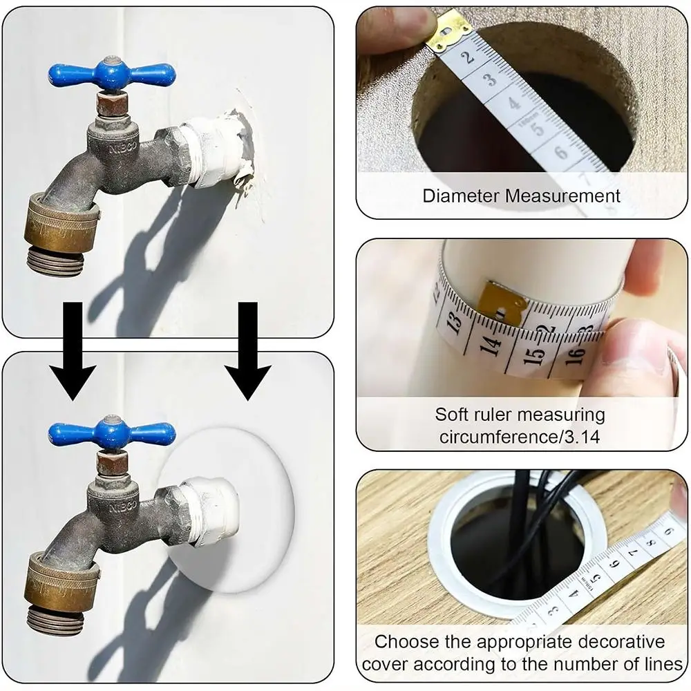 Copertura decorativa con foro a parete divisibile, flangia bianca rotonda a parete, foro autoadesivo, decorazione per rubinetto, cucina, WC decorativo