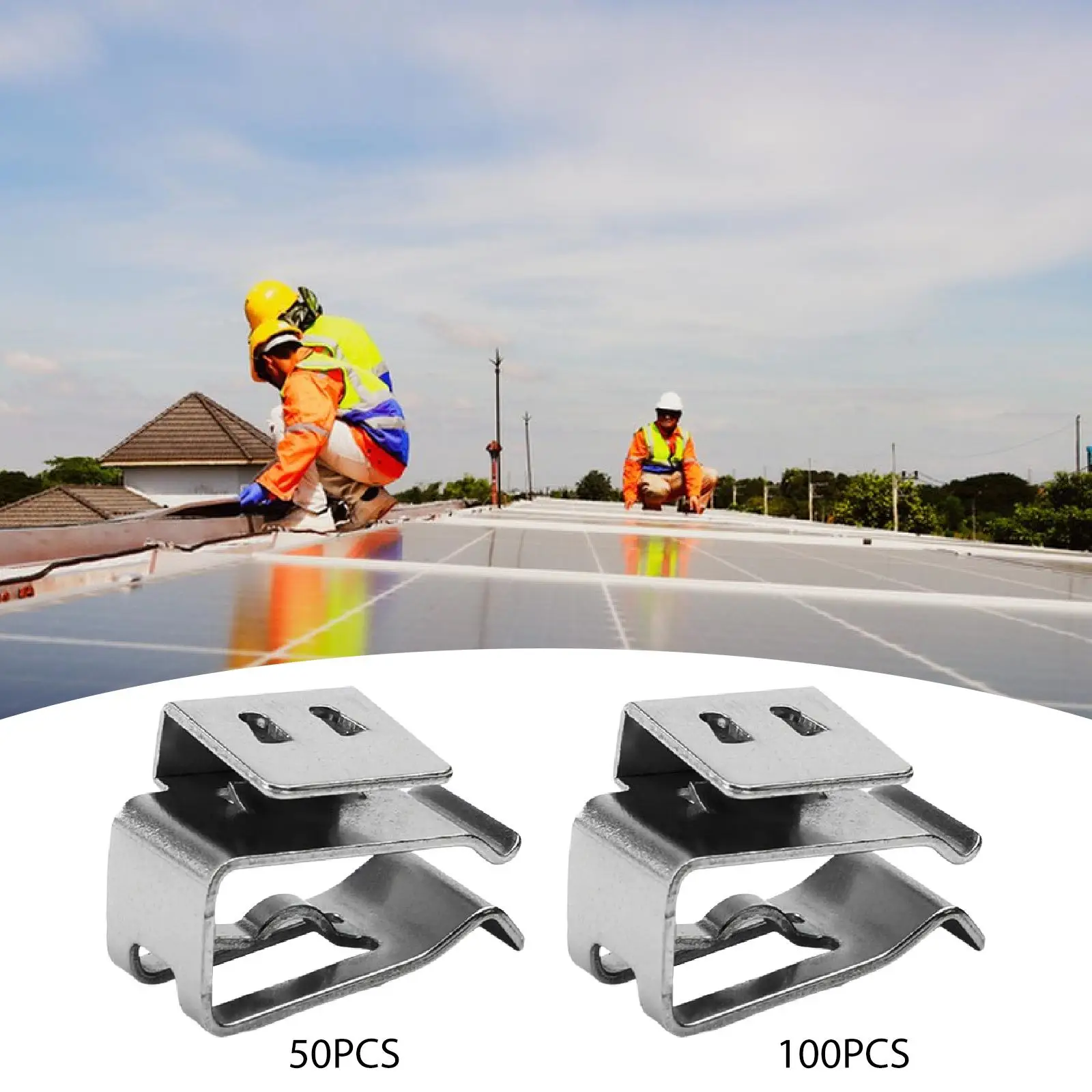 Clip fotovoltaiche in acciaio inossidabile da 50 pezzi, morsetti per cavi per pannelli solari resistenti, design per la prevenzione dei danni, adatti a varie dimensioni di cavi.