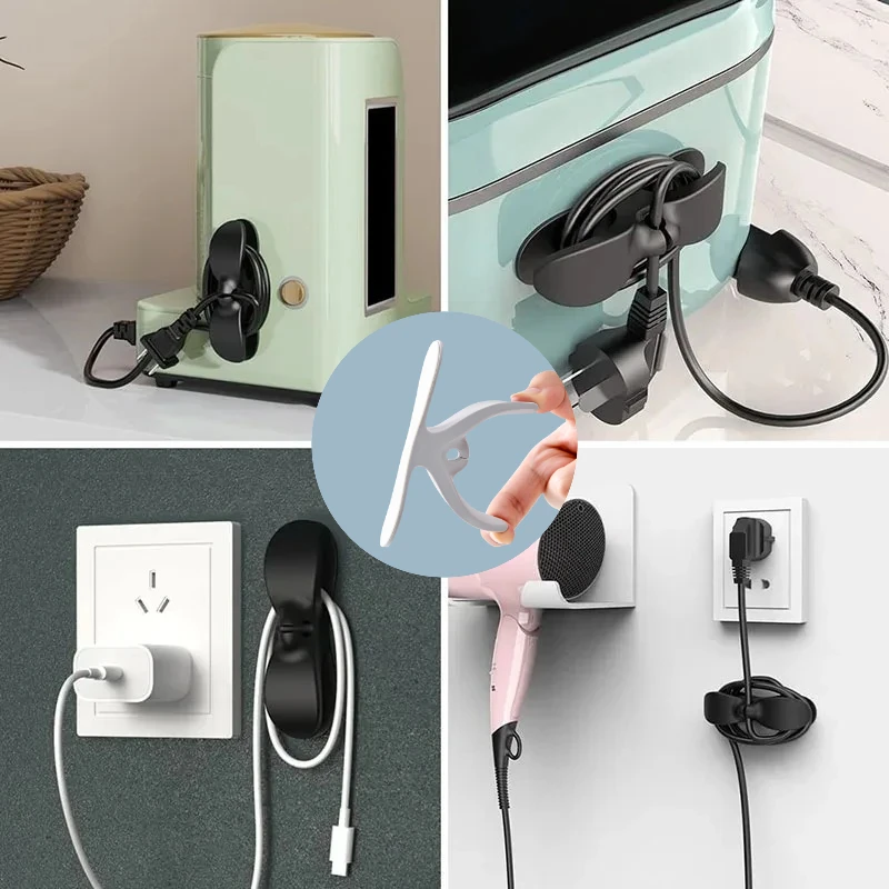 Organizzatore di cavi per uso domestico Conservazione della cucina Gestione dei cavi Avvolgitore di alimentazione fisso Spina senza traccia Strumenti domestici Design durevole