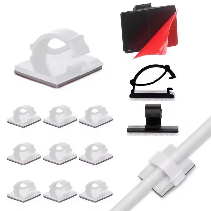 50 pz Clip per cavi adesivi Clip per cavi Gestione dei cavi Morsetti per supporti per cavi Morsetti per fascette per auto, ufficio e casa