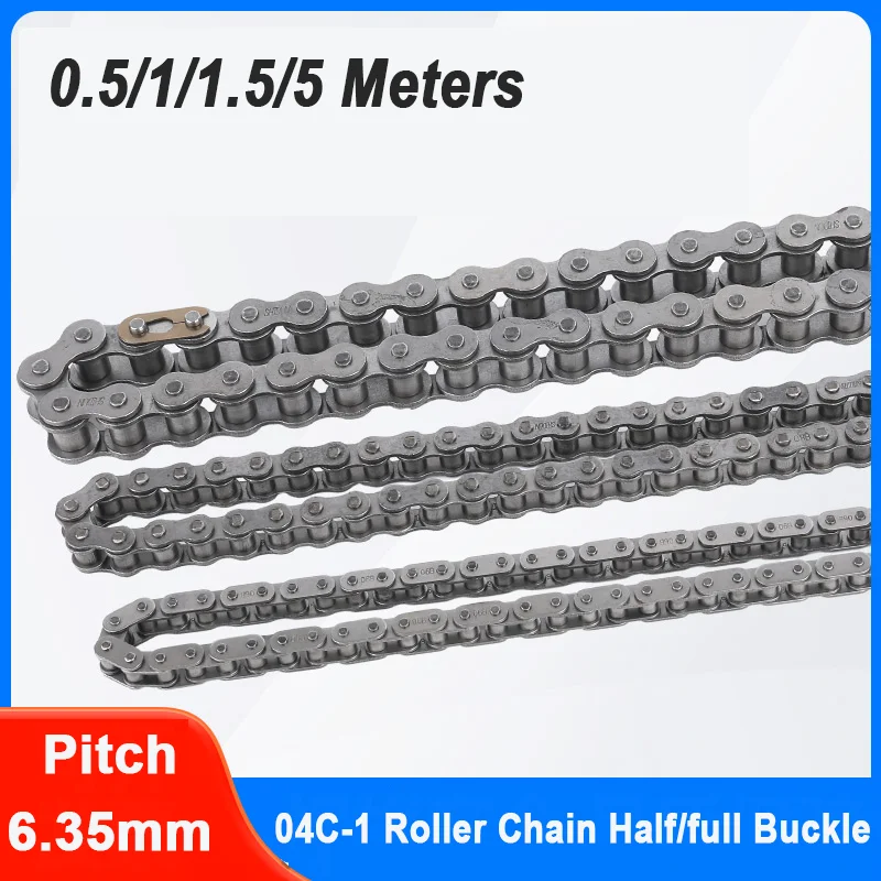 Passo 6,35 mm 04C-1 Catena a rulli Fibbia mezza/full Acciaio al carbonio Trasmissione industriale Catena a fila singola 0,5/1/1,5/5 metri